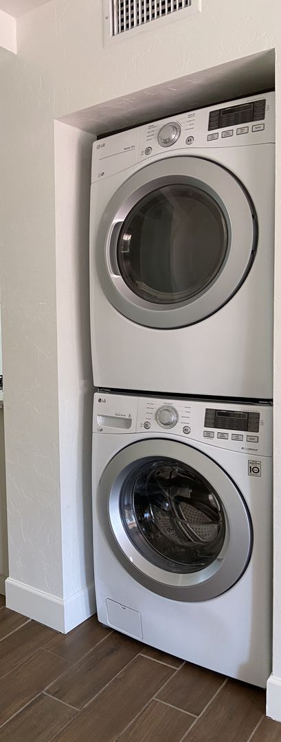 This apartment home is located in a single level building...Talk about an impressive apartment home! Kitchen is fully upgraded with stainless steel appliances, gas stove, frost free refrigerator, dishwasher, built in microwave with granite counters. Beautiful natural lighting with custom paint and hardwood flooring. Convenience at your fingertips with a washer and dryer in your apartment home. Decorative fireplace will impress your guests for a relaxing evening at home.